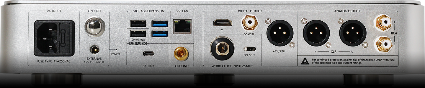 | USB Audio | USB Audio port x 1 - Supports up to PCM 768KHz and DSD 11.2M (DSD256) |